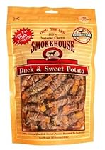 SmokeHouse Duck & Sweet Potato Dog Treats are 100% natural low in fat and high in protein. The healthy combination of vegetable and duck will become a favorite of your dog. Chews are packaged in a resealable bag for easy storage and freshness.